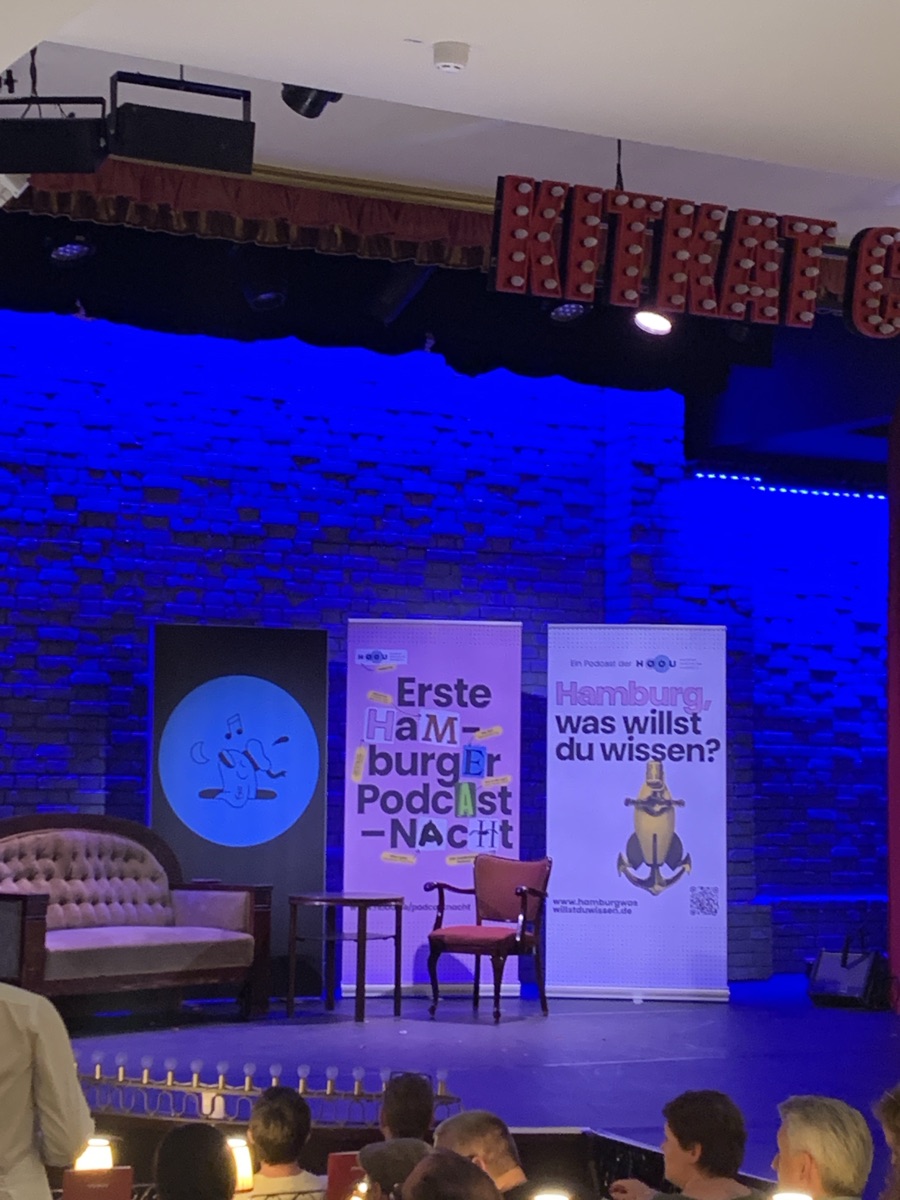 Das Hansa Theater ist eine tolle Location. Publikum wirkt wie Abendblatt Leser (die mit Abo), Leute, die irgendwas mit Medien machen und eben Podcast-Hörerinnen.